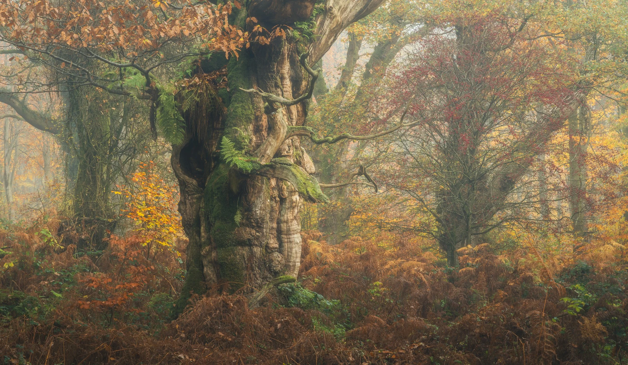 So along with keeping your image borders tidy, searching for depth, getting the light right, hunting out mist and fog to give your woodland scenes more depth, focus stacking, exposure bracketing, scene balance, scouting and a mind melting load of other factors, the one thing I look for the most is character. I love nothing more than a tree that stands out from those around it. This may be because it is a different species such as Bruce, the mighty 500 year old oak who is now surrounded by a woodland of Poplar trees.